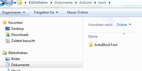 Den Ordner "tools" öffnen und den Ordner "ArduBlockTool" erstellen. Bitte auf die GroßUndKleinSchreibung achten!