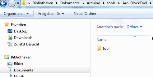 Den Ordner "ArduBlockTool" öffnen und den Ordner "tool" erstellen: