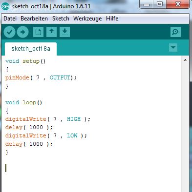 In der Arduino-IDE steht nun das fertig kompilierte, d.h. übersetzte Programm: