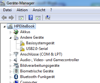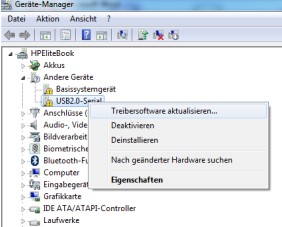 Im Geräte-Manager findet man so allerhand Dinge, die nicht richtig installiert wurden (Mit dem gelben Ausrufezeichen markiert!), so auch den USB2.0-Serial Treiber:
