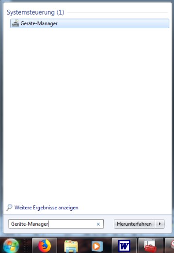 Jetzt muss man den Geräte-Manager öffnen, z.B. indem man auf "Start" klickt und dann "Geräte-Manager" eingibt und dann oben auf den Geräte-Manager klickt: