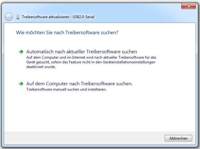 Im folgenden Fenster wählt man "Auf dem Computer nach Treibersoftware suchen." aus: