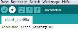Angenommen, irgend ein Block ruft die "Test-Library" auf. Im Sketch würde dann diese Zeile erscheinen: