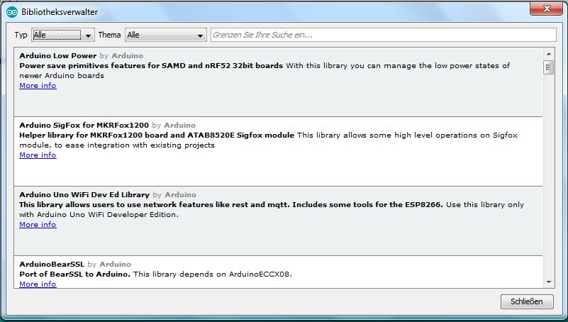 Es öffnet sich ein Fenster "Bibliotheksverwalter". Hier sind so allerhand erhältliche Biblitheken aufgeführt: