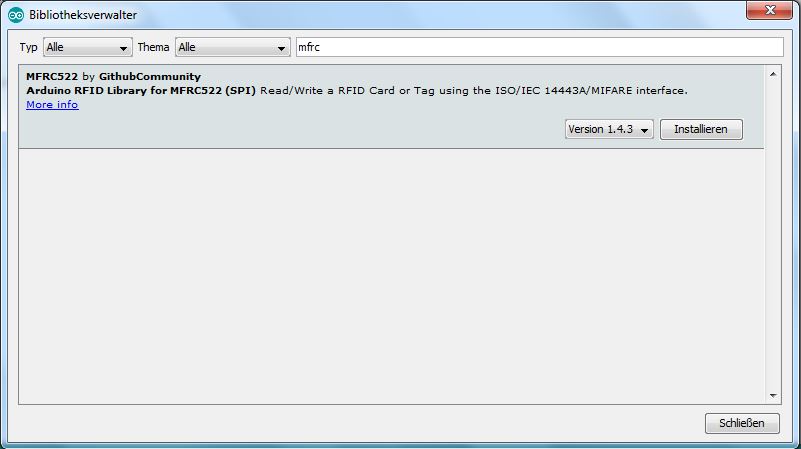 Andere häufig genutzte Bauteile (z.B. RFID-Chip) benötigen eine Standard-Bibliothek: