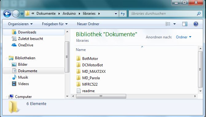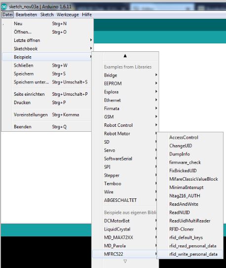 Im Ordner "libraries" wird nun der Ordner "MFrC522" und eventuell auch andere Bibliotheken aufgeführt: