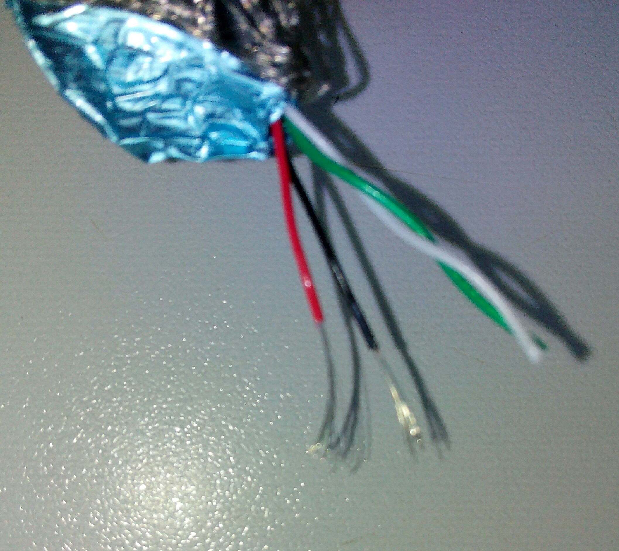 Es erscheinen vier Litzen, eine rote und eine schwarze sowie zwei andere. Wir brauchen nur die rote und die schwarze, die abisoliert und verzinnt werden können.