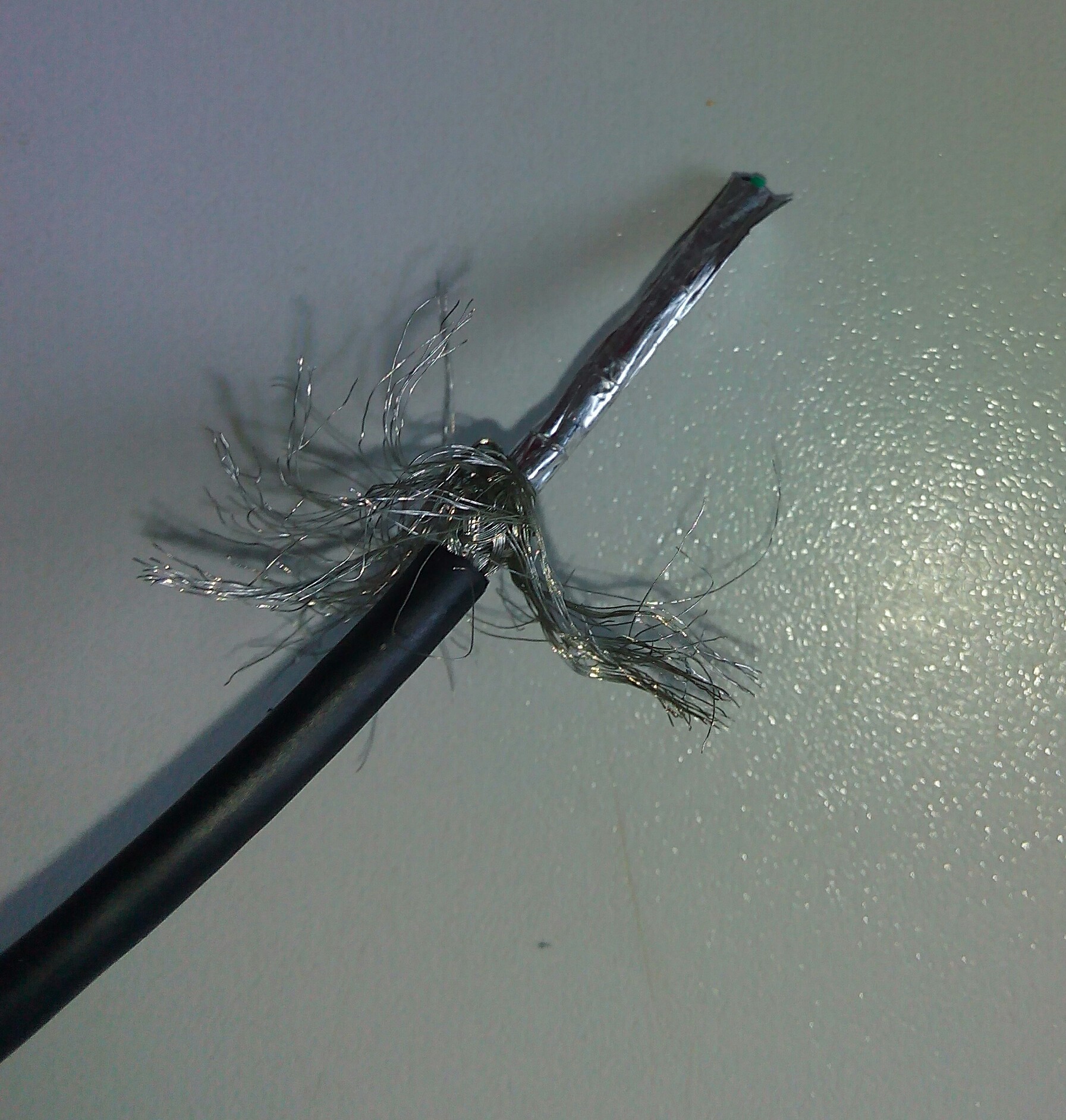 Danach wird die Abschirmung zurückgeschoben und es erscheint eine Schicht "Alupapier", das auch entfernt werden kann.