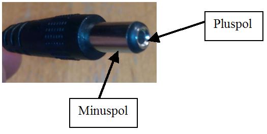 Der Pluspol der Spannungsquelle muss mit dem inneren Teil des Steckers verbunden werden, der Minuspol mit dem äußeren Teil.