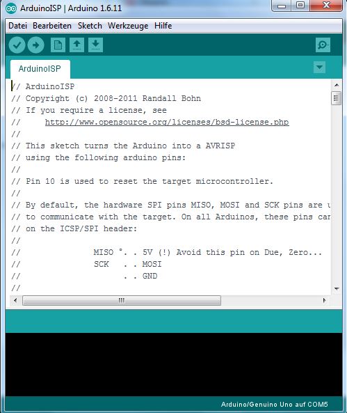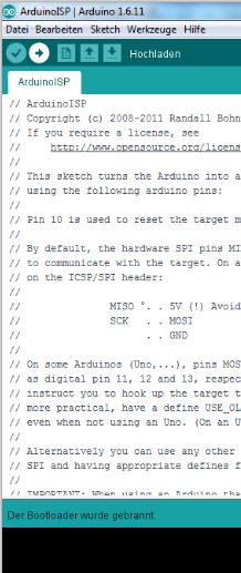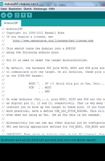 Das Programm "ArduinoISP" wird in einem neuen Fenster gestartet.