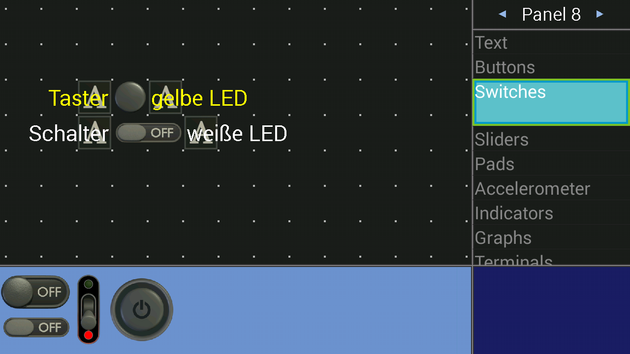 Mit der App "Bluetooth Electronics" wird das Panel aus der vorherigen Schaltung um einen beliebigen Schalter erweitert werden.