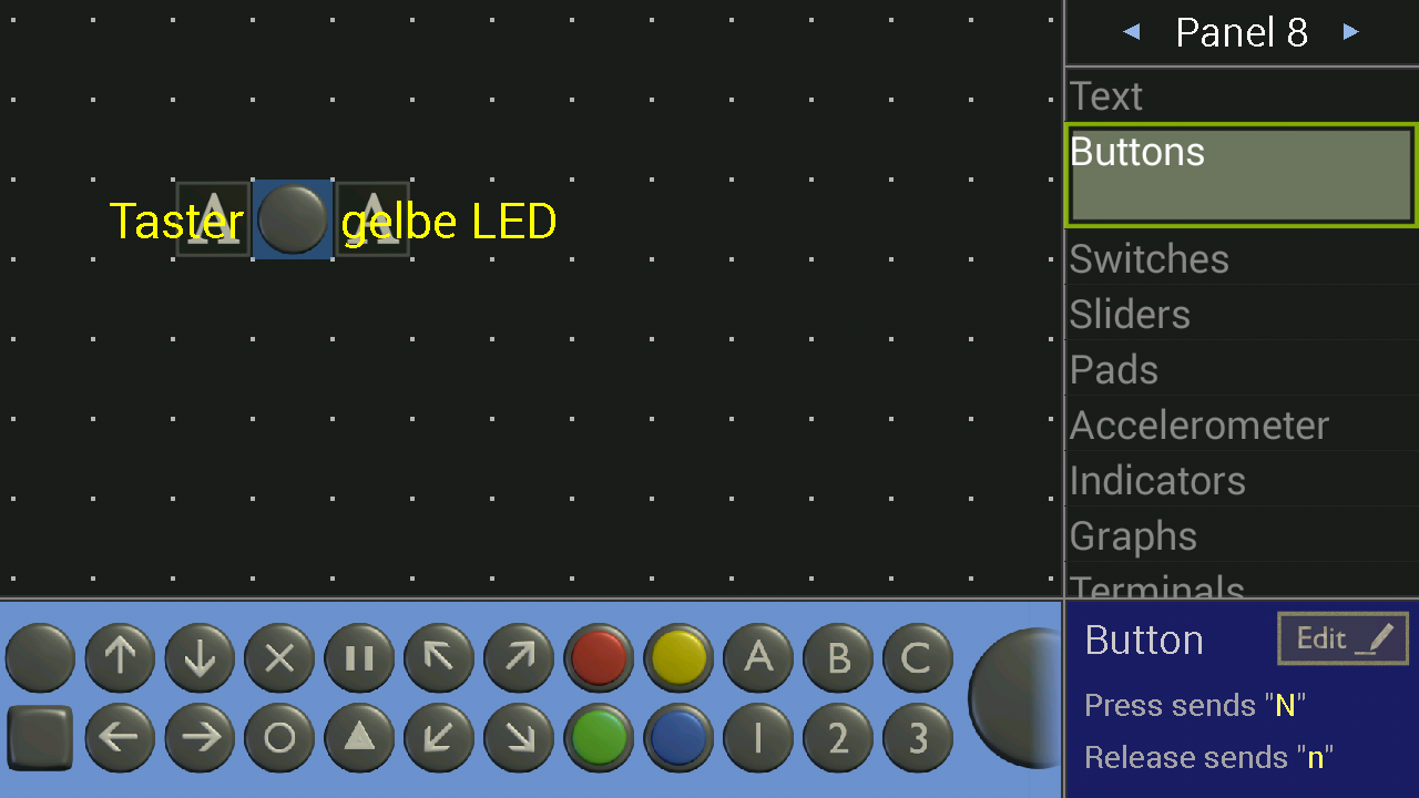 Mit der App "Bluetooth Electronics" wird ein Panel erstellt, das einen Taster (Button) enthält.
