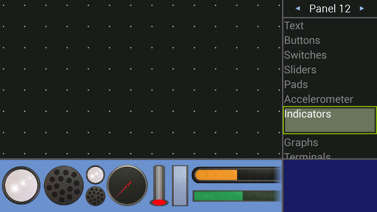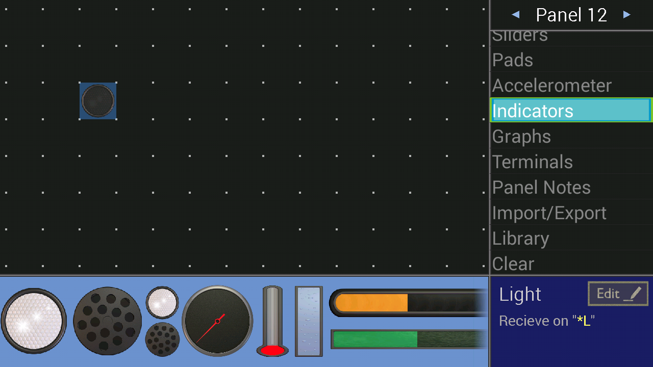 Jetzt eine weiße Kontrolllampe auswählen und in das Panel hineinziehen: