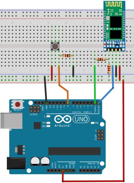 BeschreibungDer Aufbau der Schaltung ist ein Mix aus der Schaltung zum Einlesen eines Tasters und dem Bluetooth-Taster.