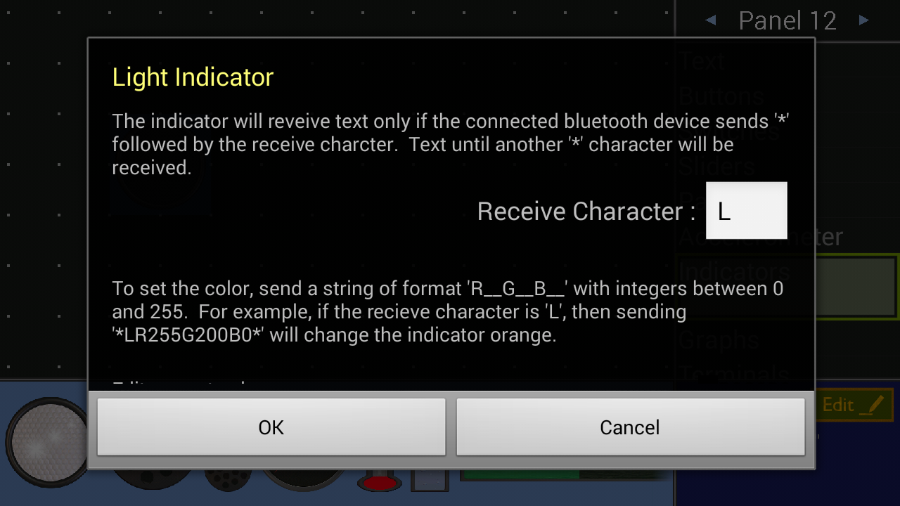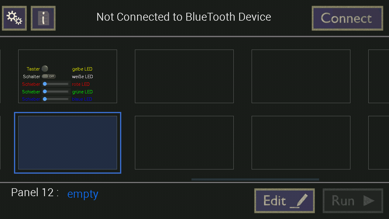 Mit der App "Bluetooth Electronics" wird ein neues Panel erstellt.