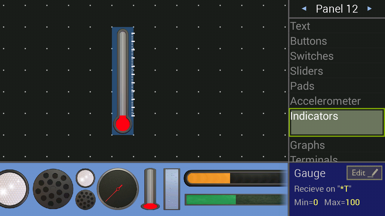 Eine der Balkenanzeigen in das Fenster ziehen, hier ist es das Thermometer: