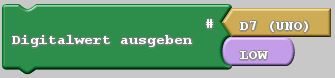 An Pin 7 soll jetzt keine Spannung mehr anliegen (LOW). Die LED wird ausgeschaltet.