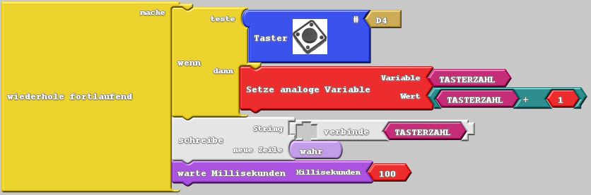 Der Wert der Variablen „TASTERZAHL“ wird dann im seriellen Monitor ausgegeben.