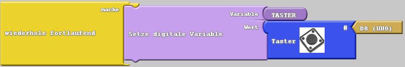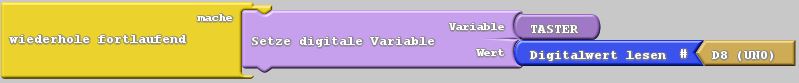 Der digitale Pin 8 wird abgefragt. Liegt an ihm eine Spannung von 5V (HIGH) an, dann erhält die Variable „TASTER“ den Wert „wahr“, sonst den Wert „falsch.